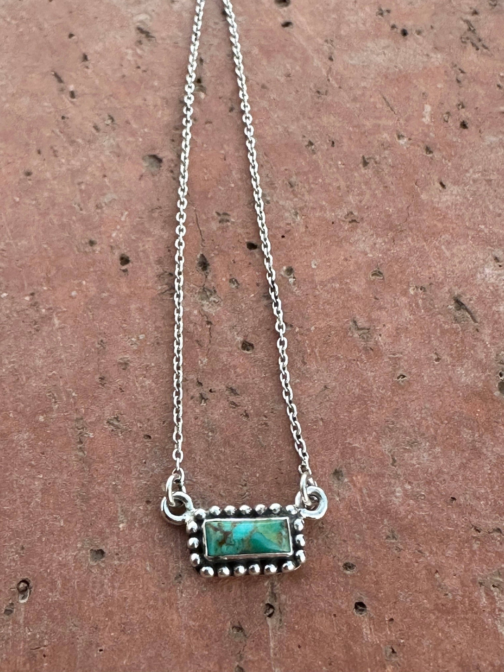 Beautiful Handmade Sterling Silver Bar Necklaces. Such gorgeous craftsmanship! Sterling chain measures 16 inches long with a 2 inch extender. Each necklace is unique due to the fact they are natural stones and will vary.