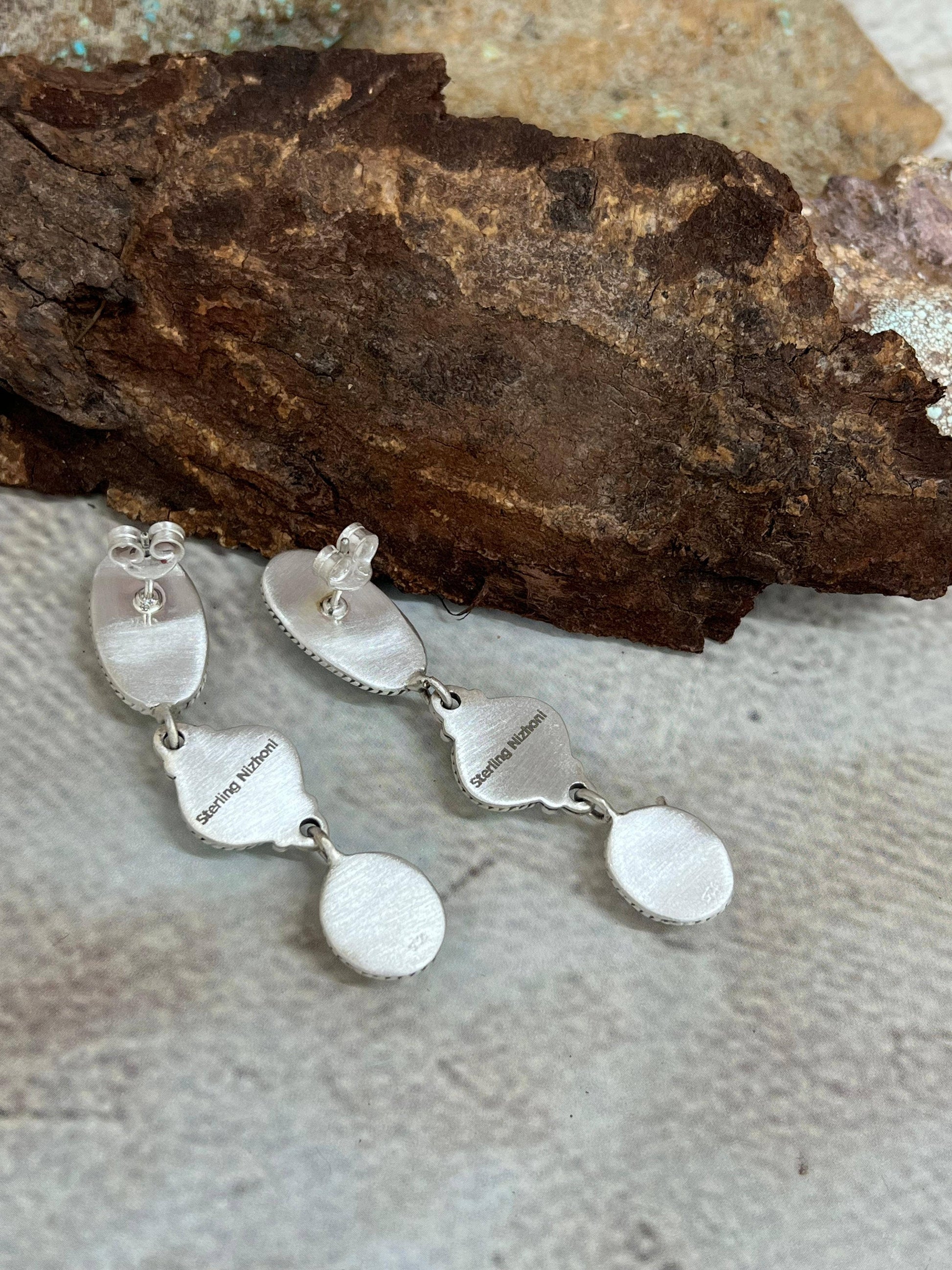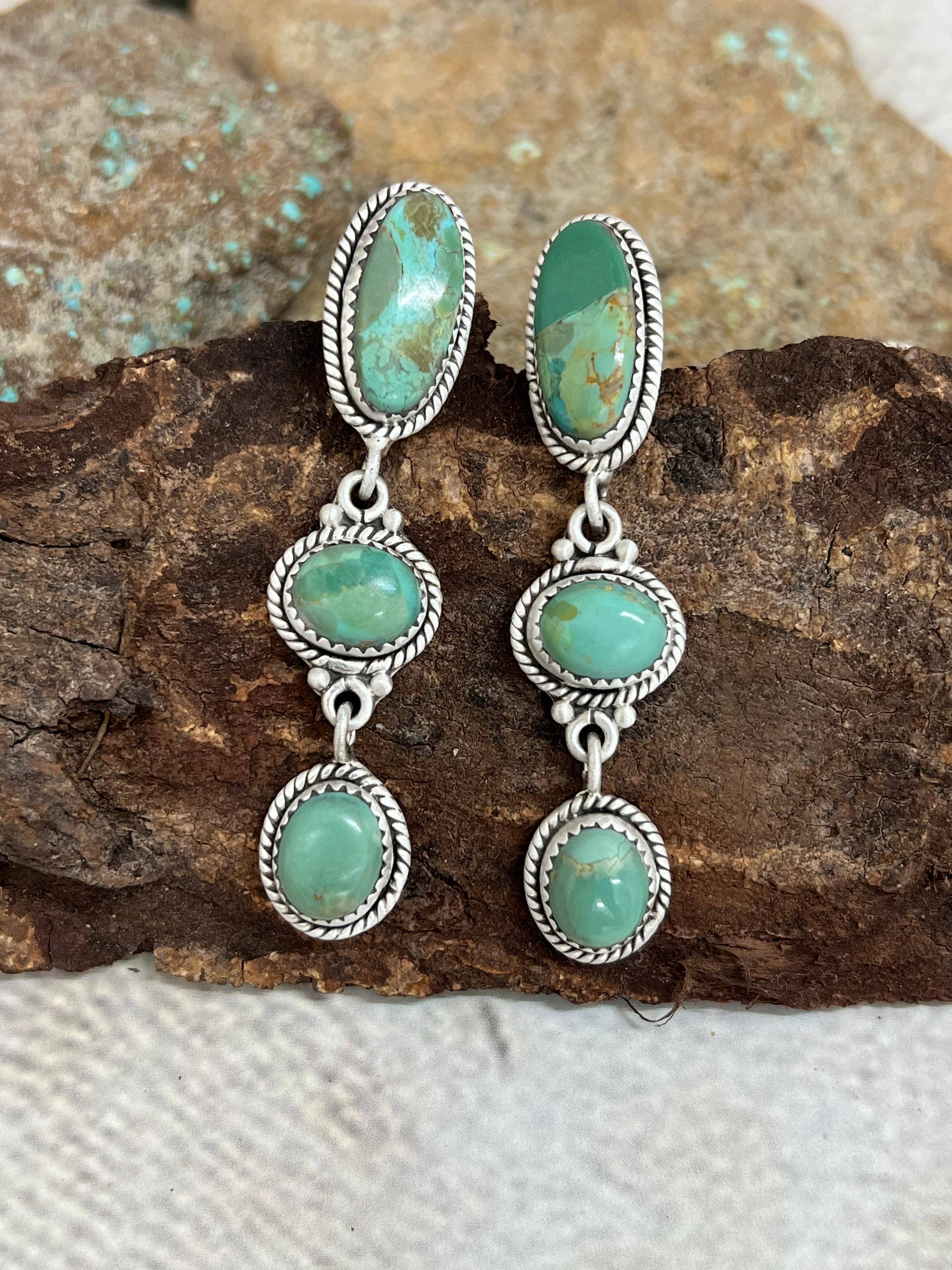 Each listing is for 1 pair earrings only. How gorgeous are these Handmade Natural Kingman Turquoise Post Earrings!! These are lightweight and measuring 2" long 3/8" wide! Stamped with “Sterling” and signed.
