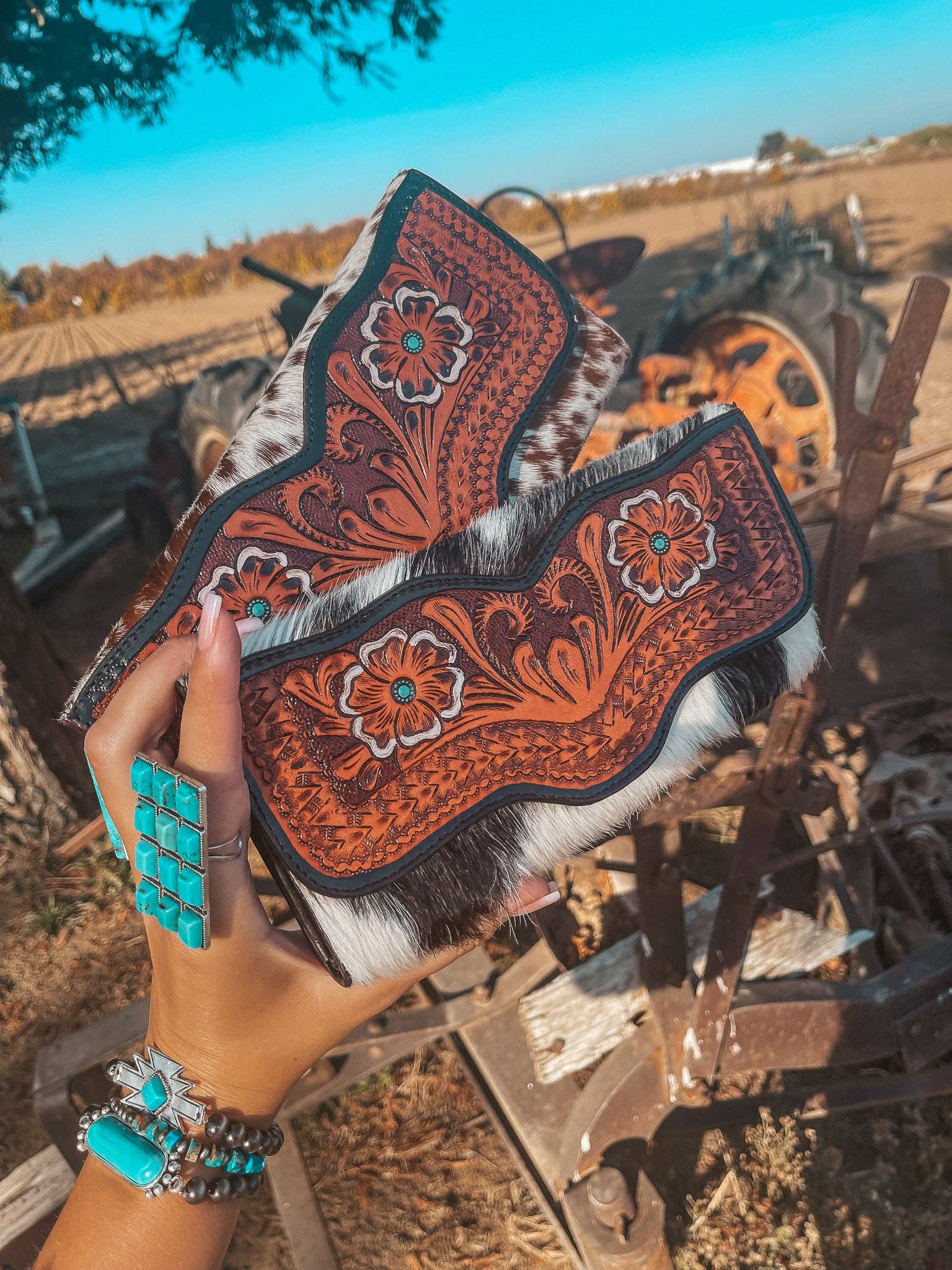 Each wallet is hand made, tooled, assembled and unique in its Hyde. Please leave grace for minor imperfections in painting and tooling. With each item being hand made, there may be slight differences due to the nature of genuine leather products.